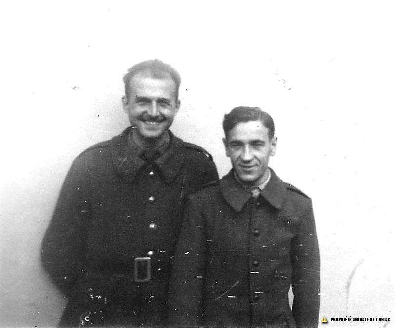 Oflag IIB d'ARNSWALDE : à gauche, le lieutenant Bernard JACHEET. Le nom de l'autre officier présent sur cette photo n'est pas connu.