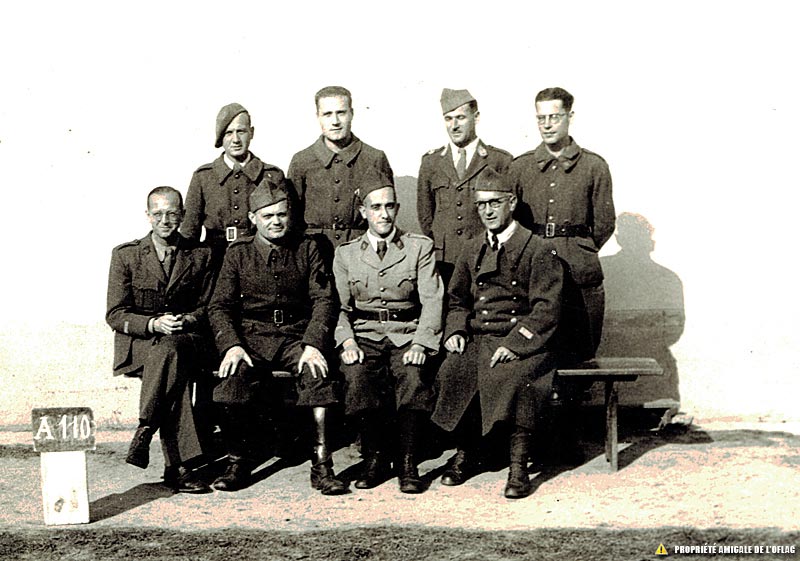Oflag IIB – Arnswalde : 1er rang assis : 2ème en partant de gauche = capitaine Marcel BRIOTTET. 2ème rang : 2ème en partant de gauche = Jean PLUMENAIL. Les noms des 6 autres prisonniers ne nous sont pas connus à ce jour.