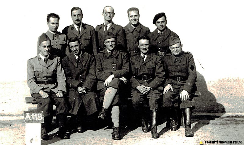 Oflag IIB – Arnswalde : 1er rang assis : capitaine Marcel BRIOTTET 1er à droite. 2ème rang : 2ème en partant de droite : Jean PLUMENAIL. Les noms des 8 autres prisonniers ne nous sont pas connus à ce jour.