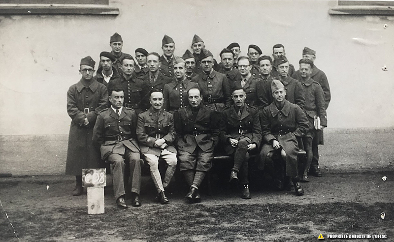 Oflag IIB - Arnswalde: photo of officers, none of whom are identified (one of whom may have served in the 'crew' of the Maginot Line fort 'Bambesch' (Association du fort du Bambesch).