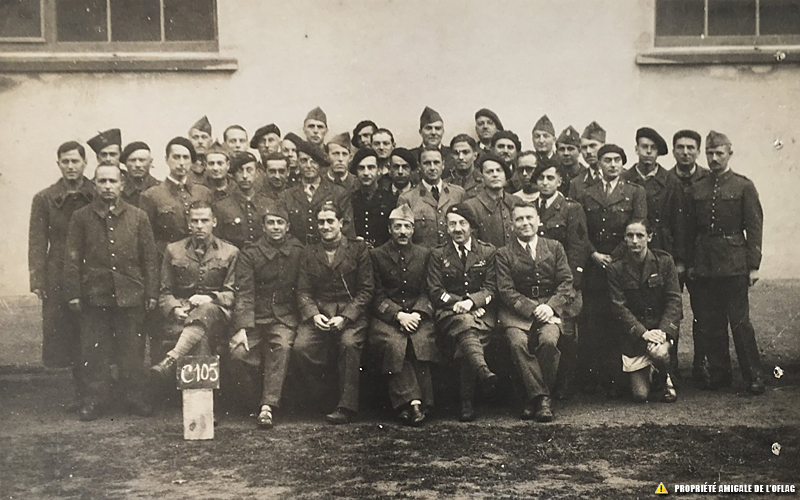 Oflag IIB – Arnswalde : photo d'Officiers dont aucun n'est identifié (l'un d'eux a peut-être servi au sein de « l'équipage » du fort de la ligne Maginot « le Bambesch ». (Association du fort du Bambesch). Oflag IIB - Arnswalde: zdjęcie oficerów, z których żaden nie jest zidentyfikowany (jeden z nich mógł służyć w "załodze" fortu Linii Maginota "Bambesch" (Association du fort du Bambesch). Oflag IIB - Arnswalde: photo of officers, none of whom are identified (one of whom may have served in the 'crew' of the Maginot Line fort 'Bambesch' (Association du fort du Bambesch).
