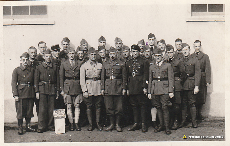 Au 1er rang et en partant de la droite : le 1er est Maurice DROUGARD (calot et lunettes) – le 4ème est le commandant BLEUSE - le 5ème est « Pierre » ou « Max » ou « Bertrand » ? WEIL – le 5ème est le commandant Armand GRASSART (Officier dont s'est inspiré Armand Lanoux pour le personnage du « commandant Watrin » dans son livre portant ce nom en titre »).
