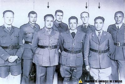 Oflag IIB – Arnswalde : de gauche à droite : 1er : Vital d'Omézon - 3ème : SOTTO - 6ème : DEPRAITERE – 7ème : GUIBAL. Les noms des 4 autres Officiers ne nous sont pas connus.