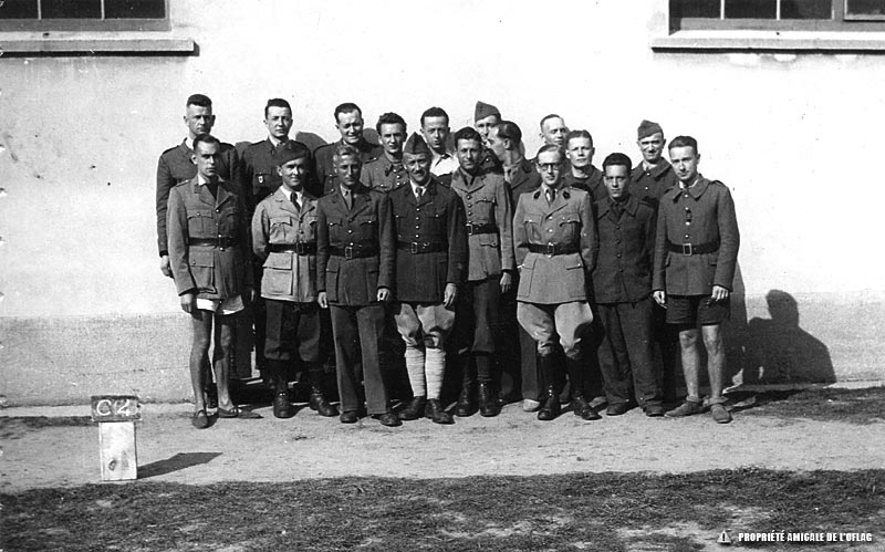 Oflag IIB Arnswalde : Le Lieutenant Bernard Rousselin-Legrand est le premier à gauche au premier rang. Le capitaine Désiré Blas est le premier à gauche au deuxième rang.
