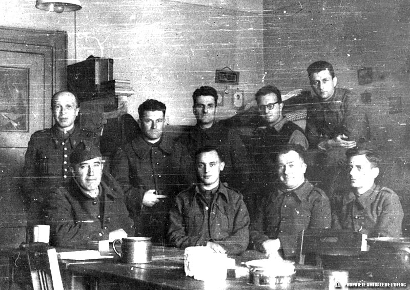 Oflag IIB - Arnswalde : Arnswalde – Oflag IIB : le Lieutenant René BILLARD est le 1er assis à gauche. Jacques BARON-LARCANGER figure vraisemblablement sur cette photo mais n'est pas identifié. Arnswalde - Oflag IIB : porucznik René BILLARD siedzi pierwszy z lewej. Jacques BARON-LARCANGER prawdopodobnie pojawia się na tym zdjęciu, ale nie został zidentyfikowany. |