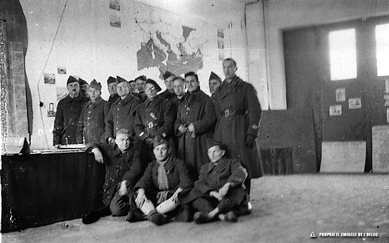 Oflag IIB d'Arnswalde : Officiers non identifiés dans un garage du camp