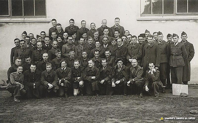 Oflag IIB d'Arnswalde : le lieutenant Georges DELLOYE est le 3ème en partant de la gauche au dernier rang. Le lieutenant Pierre SILVESTRE est au 1er rang des officiers debout, le 3ème en retrait derrière 2 officiers et porte des lunettes.