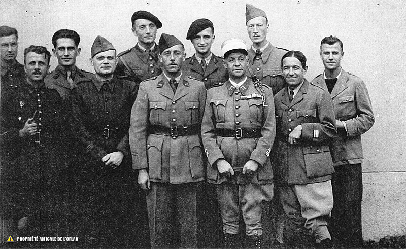 Oflag IIB d'Arnswalde : 1er rang : le 2ème en partant de la gauche est le capitaine Marcel BRIOTTET. 2ème rang : le 1er en partant de la droite est ALEXANDRE – le 2ème est Jean GLOTIN (qui fut après-guerre le 1er secrétaire général puis le 3ème président de l'Amicale de l'Oflag IID-IIB-XXIB) – le 3ème est François PRUAL. |