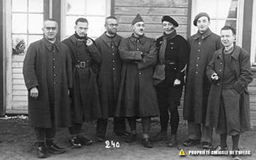 Block II, Baracke 4, Stube 1. De gauche à droite : Claude MICHON, Roger SEMET, MICHAUD, Raymond MOREL, Robert BADEY, Auguste BARDON et Adolphe TILLARD