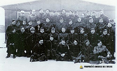 Trzeci rząd stojący od lewej: kapitan THIMONNIER, kapitan CANIC, DUBREUIL,?,GAILLOT, ROUSSELOT, BARRE, LAMY, REMY, PUISSEGUR, TOUSCH, pułkownik VENDEUR, w kepi i okularach, był jednym z francuskich dziekanów obozu.