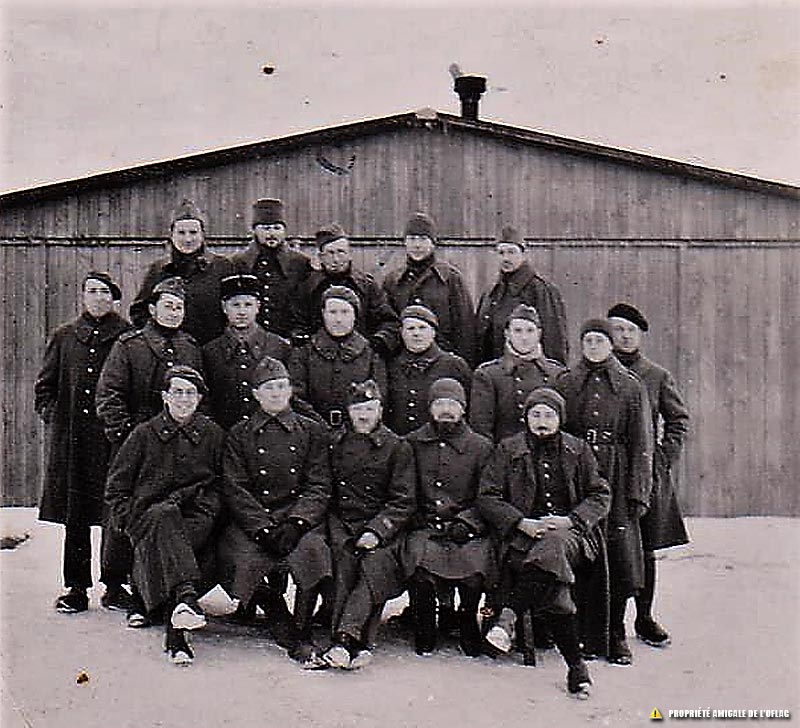 Oflag IID Gross-Born : Le lieutenant Pierre ROCHAS est assis, le 2ème en partant de la droite. Le 1er assis en partant de la gauche est le lieutenant Albert HINARD, secrétaire de l'Amicale de l'Oflag IID-IIB-XXIB jusqu'en 1995.