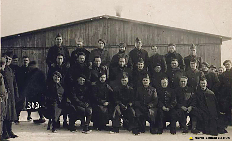 Oflag IID – Gross-Born : le sous-lieutenant Arnaud TARDAN est vraisemblablement présent sur cette photo mais nous ne savons qui il est. Aucun des 31 autres prisonniers présents sur cette photo ne nous sont connus à ce jour.