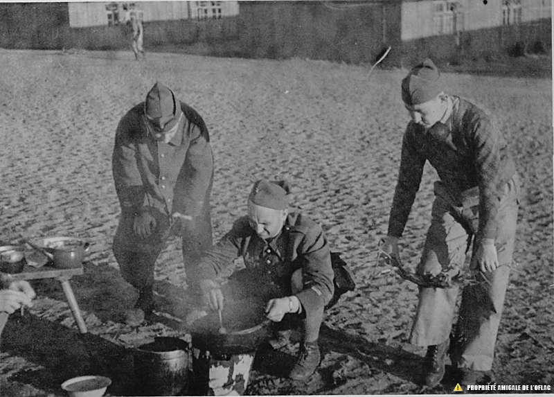 Oflag IID – Gross-Born : ces Officiers prisonniers, en train de cuisiner en plein air, ne sont pas identifiés.