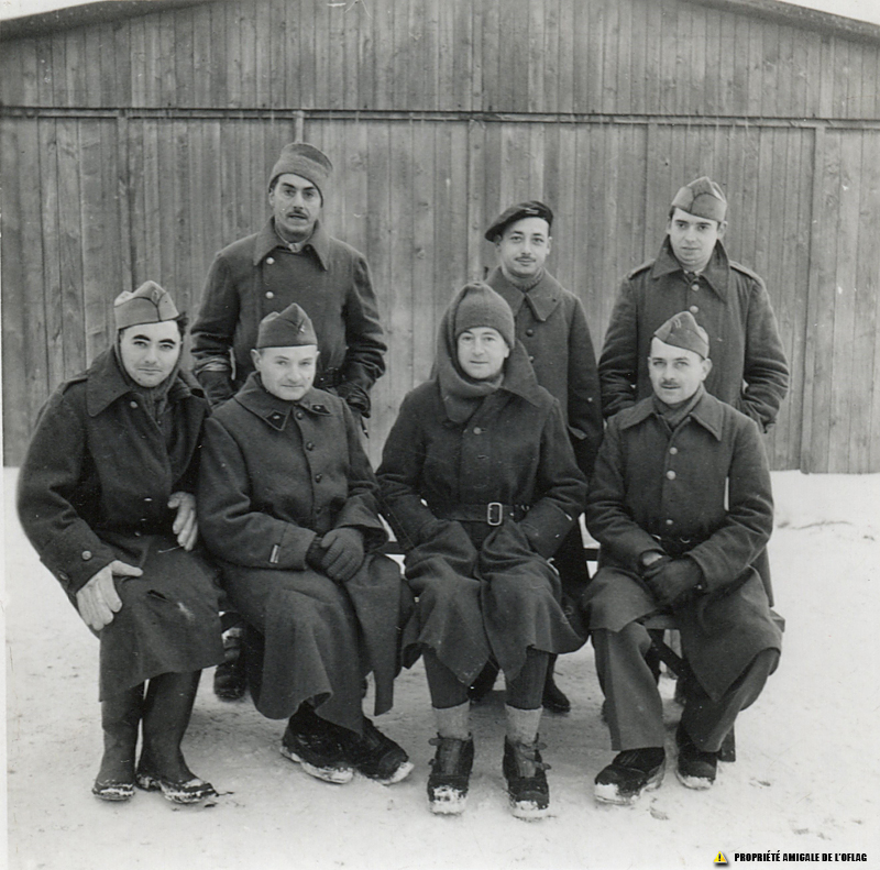 Oflag IID – Gross-Born : Dans ce groupe de 7 Officiers, le seul identifié est le 1er à droite au second rang : Lieutenant Albert MOUISSET. Oflag IID - Gross-Born : W tej grupie 7 oficerów, jedynym zidentyfikowanym jest pierwszy z prawej w drugim rzędzie : porucznik Albert MOUISSET. Oflag IID - Gross-Born : In this group of 7 officers, the only one identified is the 1st on the right in the second row : Lieutenant Albert MOUISSET.