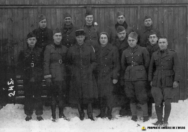 Au premier rang et de gauche à droite : Lieutenant Jean PINSARD, docteur Henri LOUBET, capitaine DELBOY, Jacques de GUERRY de BEAUREGARD, (1er en retrait) = de COANDA ?, sous-lieutenant Antony BROCARD, (second en retrait) = Jean PEYNET, Paul BOUTEFEU.