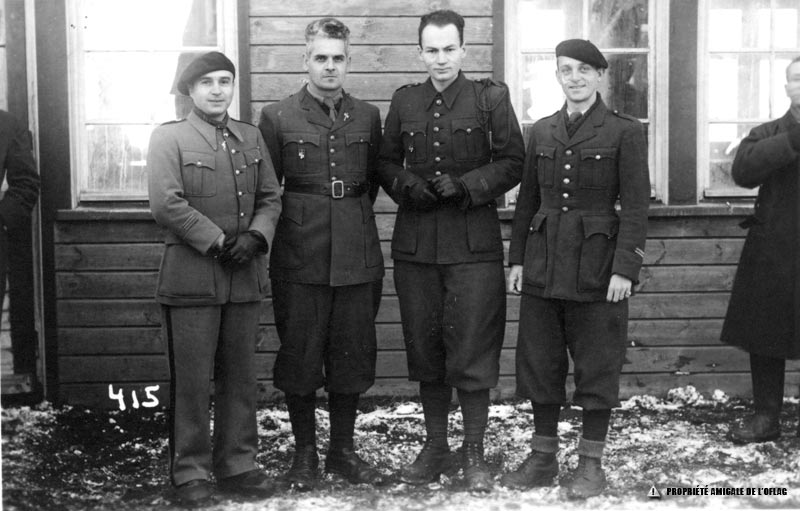 Oflag IID Gross-Born : de gauche à droite : Capitaine René OUSSET, Lieutenant BONNET, Lieutenant Jean FLATTOT décédé au cours de la captivité, Lieutenant Louis MANGONAUX.