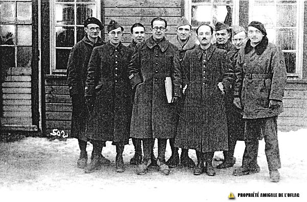 Oflag IID De gauche à droite : Paul CHABERT, Paul RICOEUR, ROBERT, FOUGEIROL, WOLVILLE, GERBEAU, JOST, PERDRIZET, Claude CARIAGE.