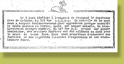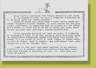 Faire-part de décès du Lieutenant Jean FLATTOT et du Soldat BANCAREL paru dans le journal des prisonniers, "Ecrit sur le Sable", le n° 24 du 15 août 1942. |