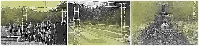 | Les derniers adieux de ses camarades dans le petit cimetière de l'oflag IID au sud-ouest du camp. Photo donnée par Monsieur Darius CZERNIAWSKI de Borne Sulinowo. | Le petit cimetière de l'oflag IID au sud-ouest du camp. Photo donnée par Monsieur Darius CZERNIAWSKI de Borne Sulinowo. | La tombe du lieutenant Maurice BOSQUIER dans le petit cimetière de l'oflag IID, au sud-ouest du camp. Photo donnée par Monsieur Darius CZERNIAWSKI de Borne Sulinowo. | |||
