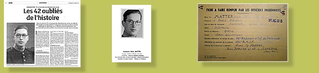 * Cérémonie au "cimetière Français", voisin du camp, le 2 novembre 1941 à l'occasion de la fête des morts. 1942 : * Capitaine BLONDEL de JOIGNY, mort du typhus le 12 janvier 1942. Un office est célébré pour lui le 16 janvier 1942. | |