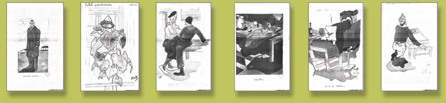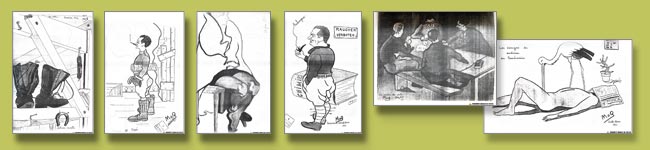 Le « tome 1 » de ce carnet de dessins a été réalisé par le Lieutenant Maurice QUINSON au cours de sa captivité dans les Oflag IID et IIB. Numéro de prisonnier = 5203. Le Lieutenant Maurice QUINSON appartenait au 289ème R.A.D.H. et il fut fait prisonnier à Dunkerque le 4 juin 1940. Ses dessins sont signés « Moq », son pseudonyme d'artiste. Dessins de Maurice Quinson - Comité du Vieux-Marseille (comiteduvieuxmarseille.net).
