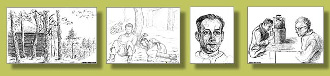 Dessins et portraits d'Officiers français, prisonniers de guerre à l'Oflag IID de Gross-Born, réalisés par le lieutenant Pierre MONNET.
