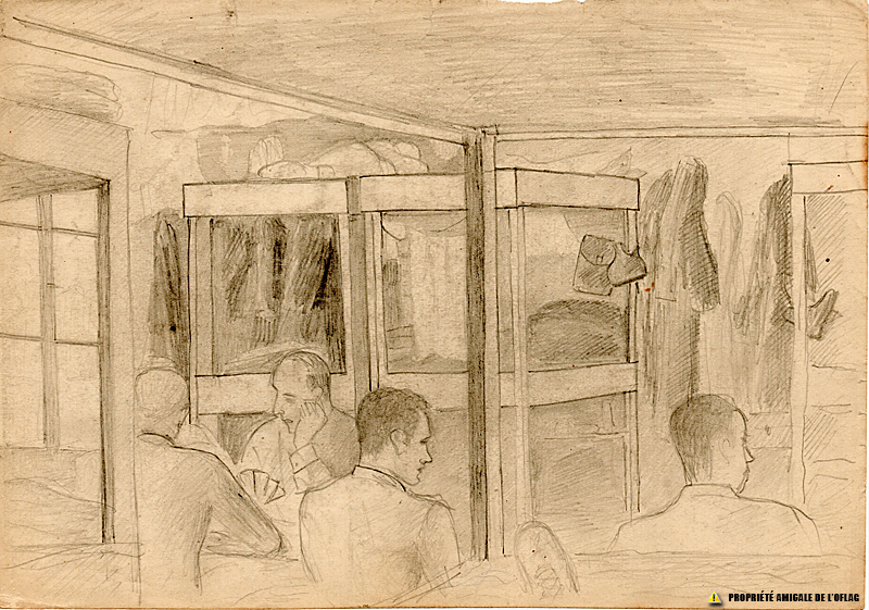 Oflag IID – Gross-Born : intérieur d'une des chambres d'une baraque. Oflag IID - Gross-Born : wewnątrz jednego z pomieszczeń w baraku.