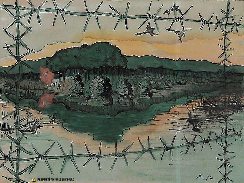Oflag IID : "the lake near Oflag IID" - watercolour by Henri de SANCY -.