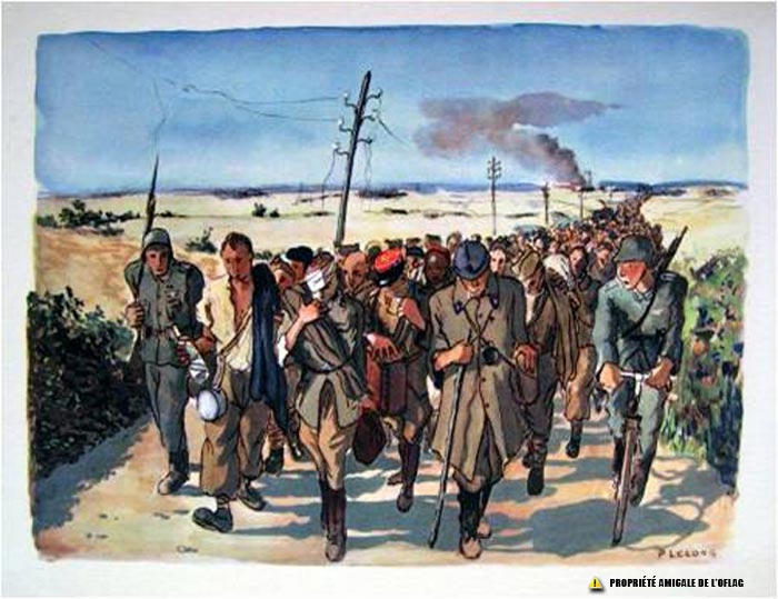 Sur la route de l'Oflag IID - dessin de Paul LELONG