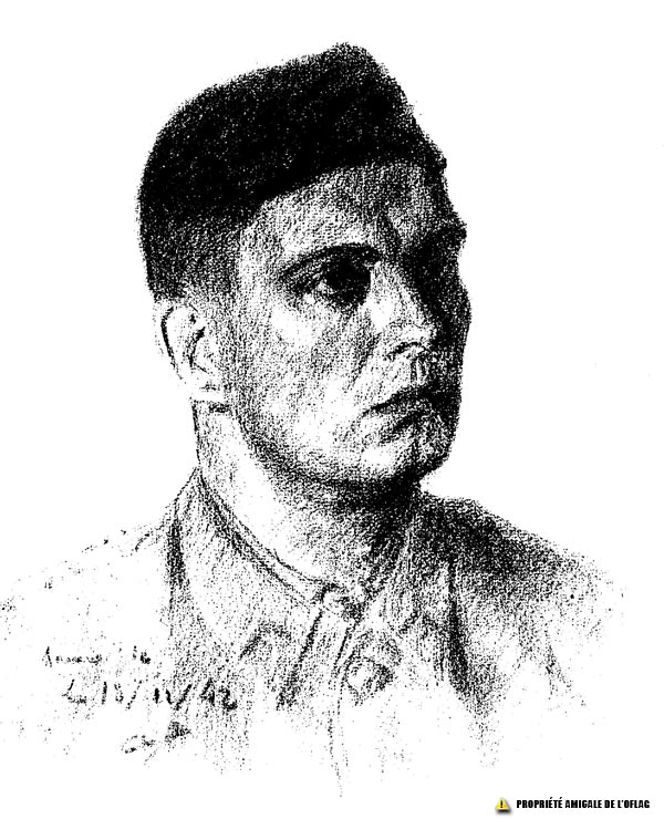 Oflag IIB – Arnswalde : "Arnswalde - 18 décembre 1942", dessin représentant le lieutenant René MARTIN.