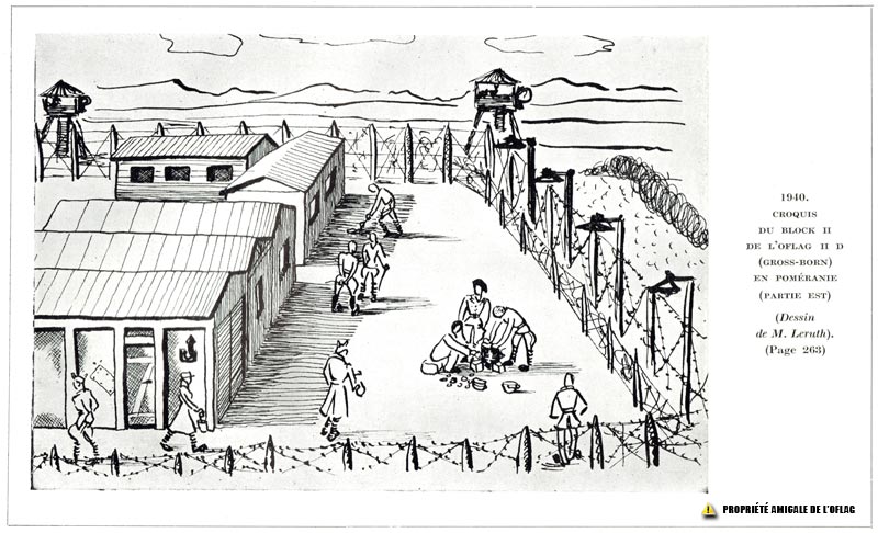 Oflag IID - Gross-Born : dessin extrait du livre de Jean LEDRUZE-DESMAIRES = « Flambée de Souvenirs ».