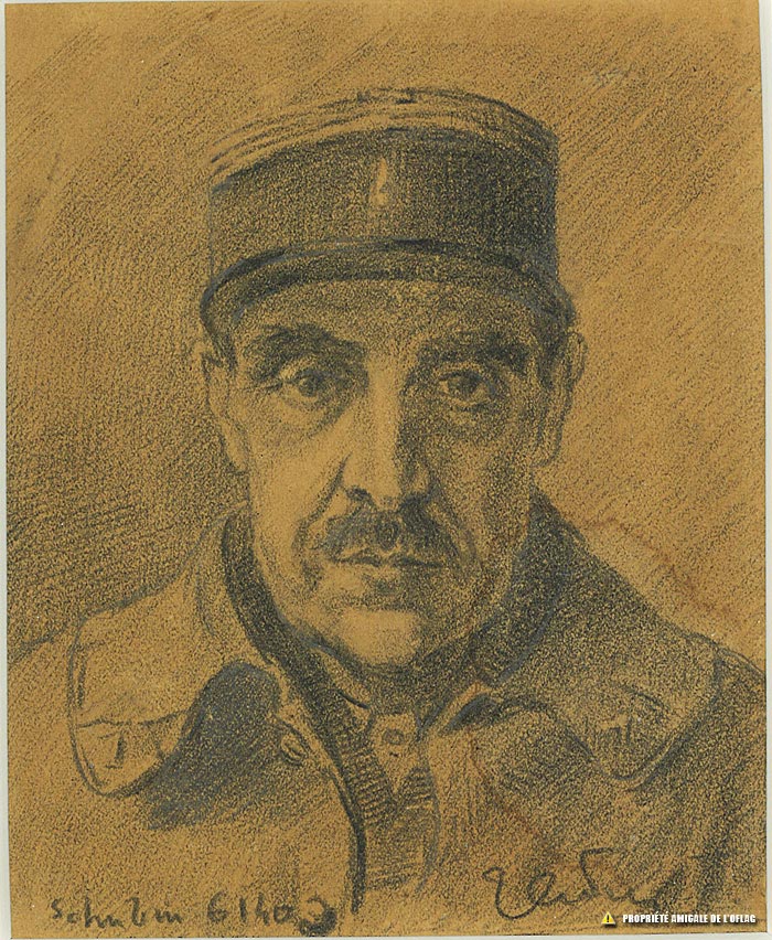 Oflag XXIB de Schubin : Dessin représentant le capitaine René LABBAYE qui fut auparavant prisonnier, durant environ 6 mois et à partir de juin 1940, à l'Oflag IID de Gross-Born avant son transfert à l'Oflag XXIB.