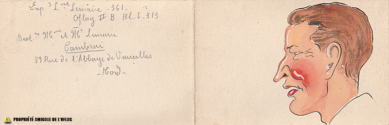 Dessin menu du repas de Noël du Sous-Lieutenant Evariste LEMAIRE, le 24 décembre 1943.