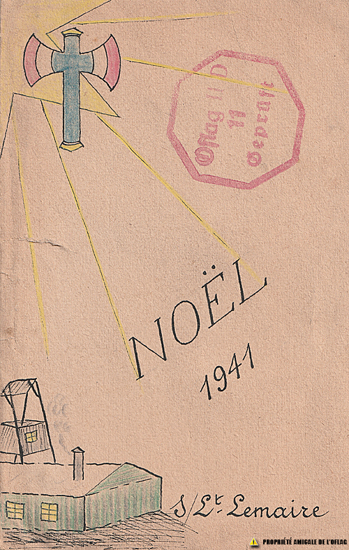 Dessin menu du repas de Noël 1941 du Sous-Lieutenant Evariste LEMAIRE.