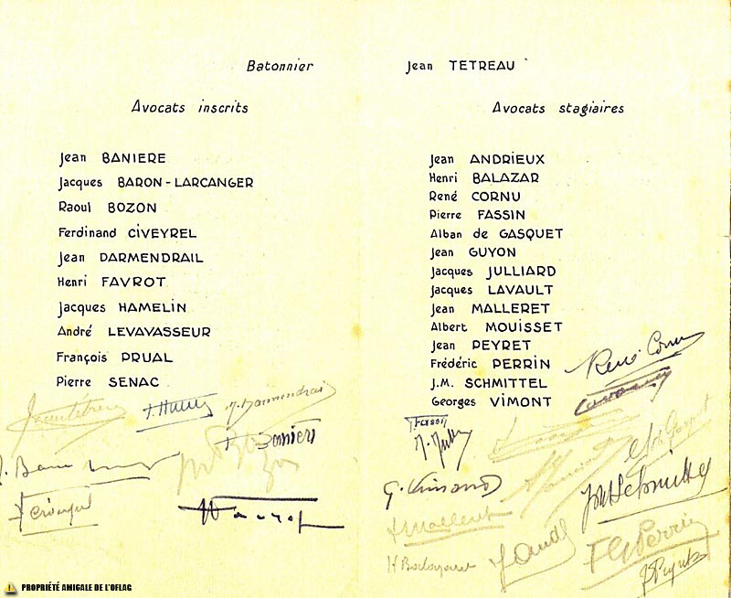 Document qui conserne les avocats de l'Oflag IIB - verso