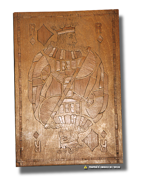 Cette boîte décorée par un Roi de coeur, a été fabriqué par un officier prisonnier de l'Oflag IIB-IID, le Lieutenant Georges THOMAS à l'occasion d'une des cinq fêtes de Noël passé loin de sa famille.