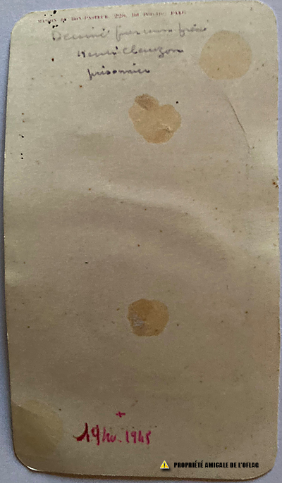 Image of Christ drawn by Henri CLAUZON. On the back his sister wrote: "drawn by my brother, Henri Clauzon, prisoner. (11.5 cm high - 6.5 cm wide).