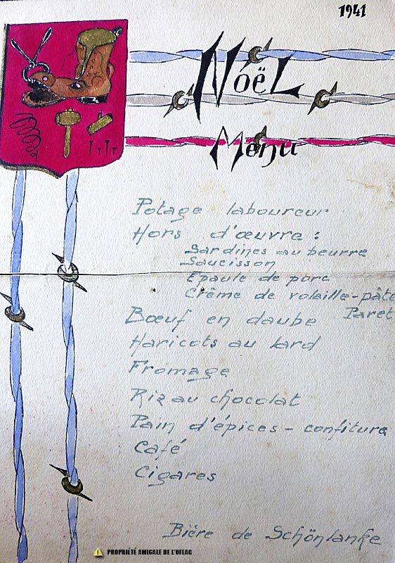 Oflag IID ou IIB : menu de Noël ? Il nous a été prêté par la fille du lieutenant Abel HENNERE.