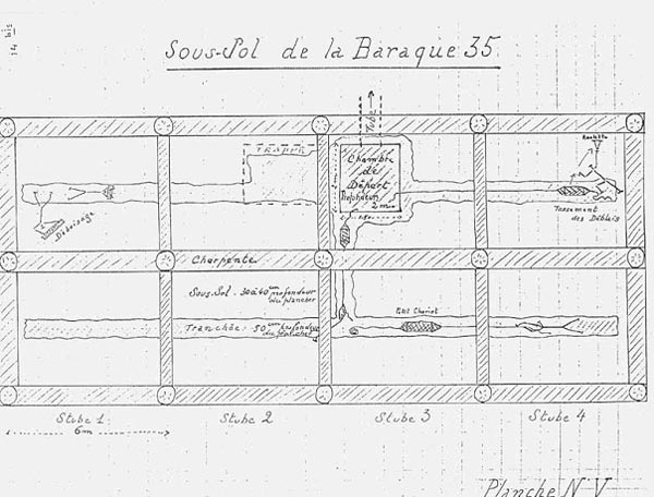 Plan du sous sol de la baraque 35 pour l'évasion de 1942