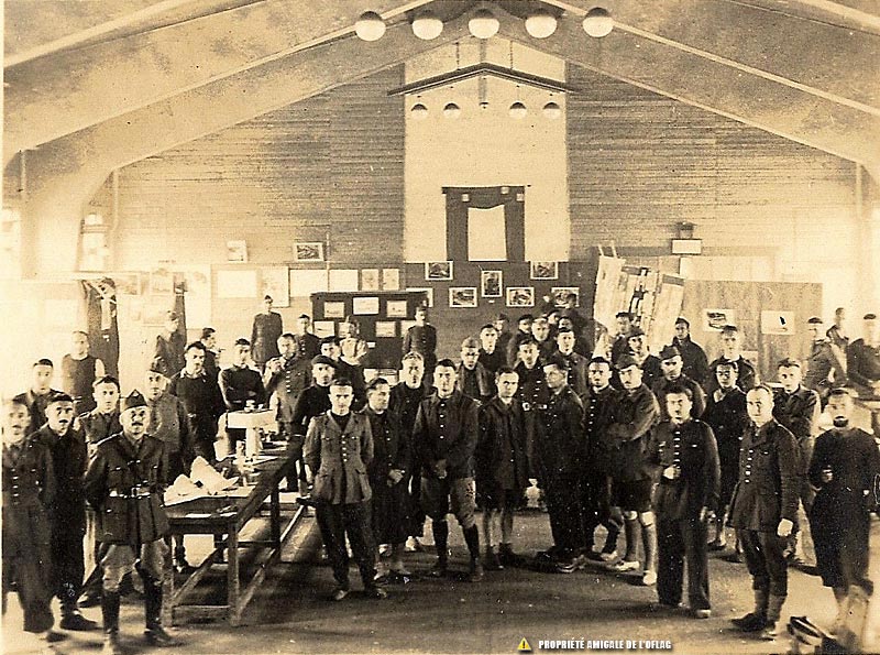 Exposition à Gross-Born dans la « Kantine ». Environ 50 Officiers prisonniers figurent sur cette photo mais leurs noms ne sont pas connus à ce jour.