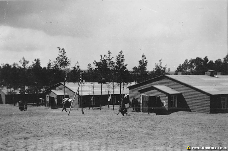 Oflag IID – Gross-Born : vue sur une partie des baraques du nouveau « Block 4 », de gauche à droite les « baraques B (où se situe la chapelle de ce Block, puis C et D. (Plan de l'OFLAG IID de Gross-Born (oflags.fr)). Oflag IID – Gross-Born : widok części koszar nowego "Bloku 4", od lewej do prawej "koszary B ( gdzie znajduje się kaplica tego bloku, następnie C i D. (Plan OFLAG IID Gross-Born (oflags.fr)).
