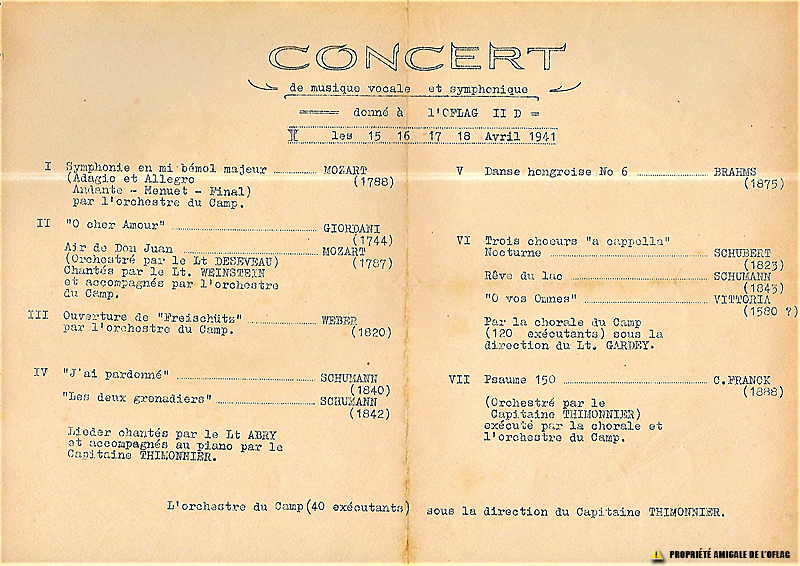 Oflag IID : « programme du concert du 18 avril 1941 » (recto).