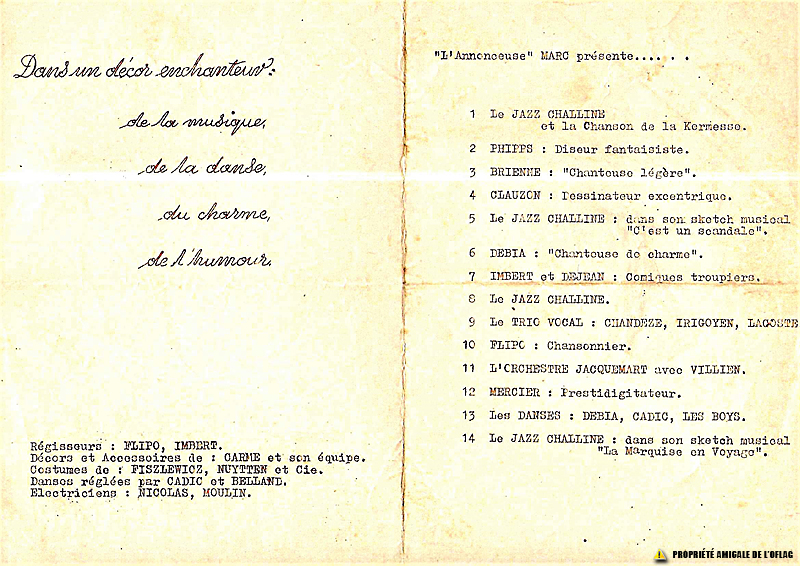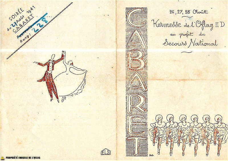 Oflag IID : « Cabaret - 27 août 1941 » (recto) et Oflag IID : « Cabaret - 27 août 1941 (verso). Oflag IID : "Kabaret - 27 sierpnia 1941" (front) oraz Oflag IID : "Kabaret - 27 sierpnia 1941" (tył). Oflag IID : « Cabaret - 27 August 1941 » (front) and Oflag IID : « Cabaret - 27 August 1941 » (back).