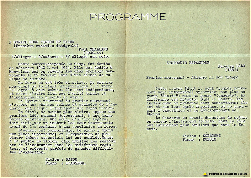 Oflag IID : « programme du concert de musique de chambre du 3 août 1941 » (recto).