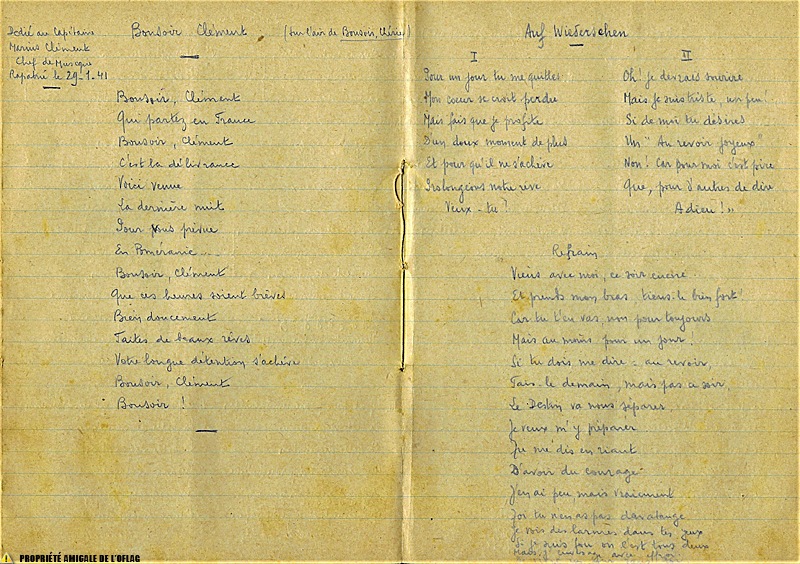 Oflag II D Carnet de chants et textes du Lieutenant René FRAY page 14