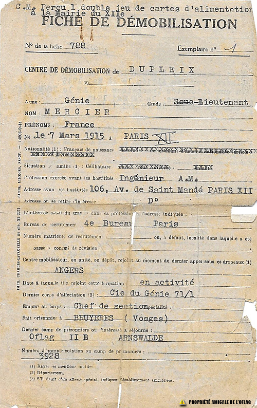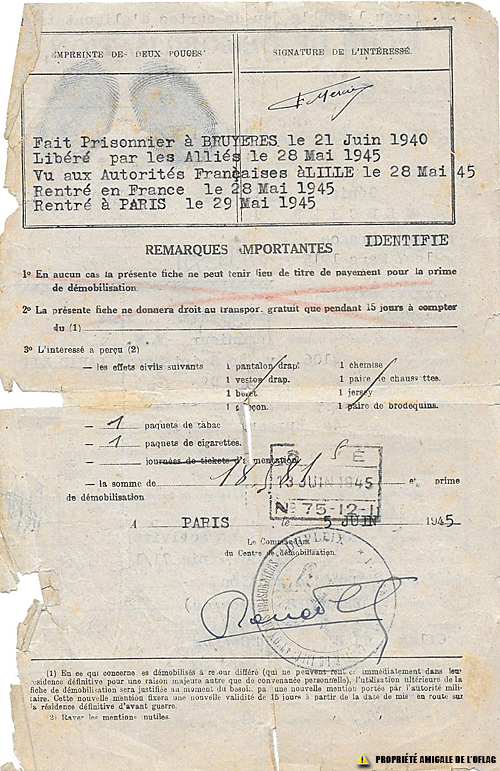 Fiche de démobilisation de France p1