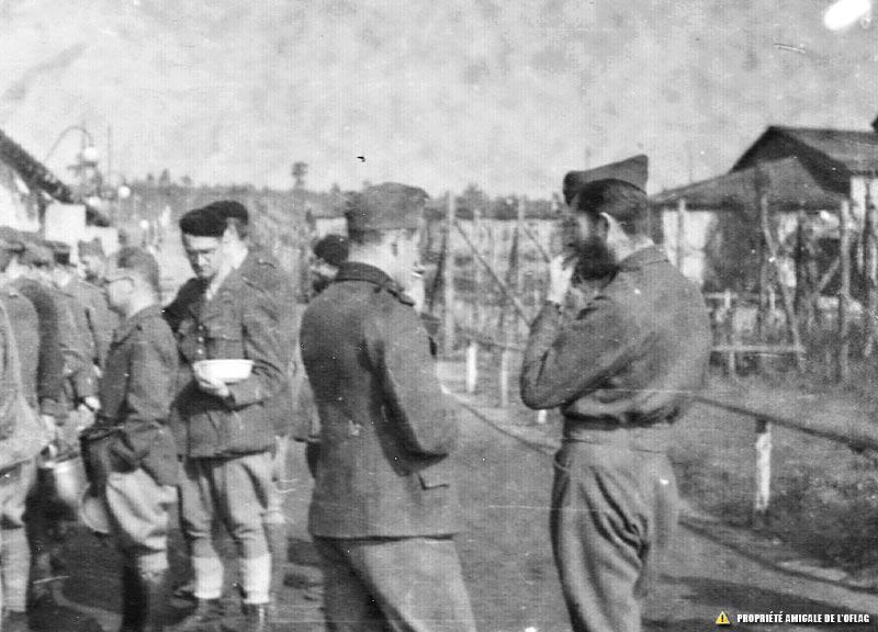 Gross-Born – Oflag IID = « La soupe ». A noter au 1er plan et de dos un gardien (posten) allemand.