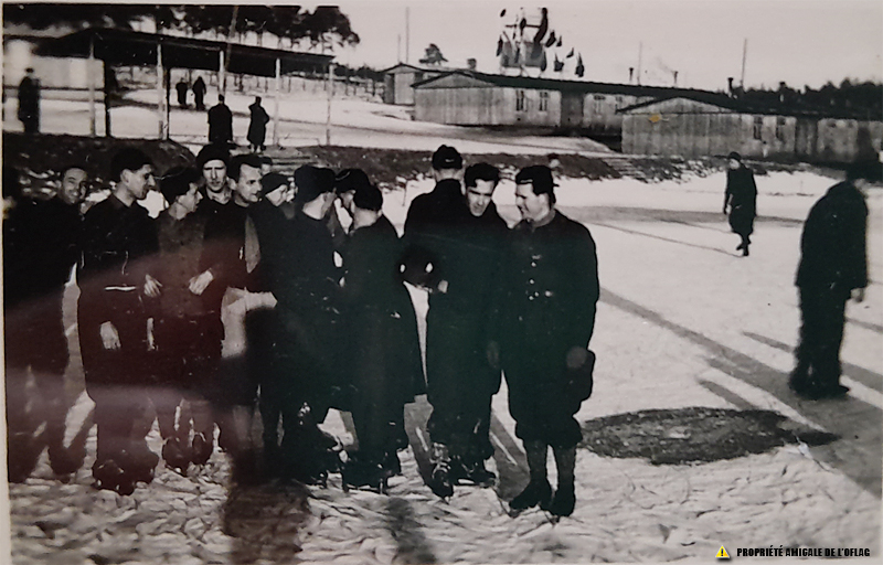 Oflag IID – Gross-Born : le terrain de sport. Les baraques que l'on aperçoit sont les 32 (à droite) et 33 (à gauche). Oflag IID - Gross-Born : boisko sportowe. Widoczne baraki to 32 (po prawej) i 33 (po lewej). Oflag IID - Gross-Born : the sports ground. The barracks in view are 32 (right) and 33 (left).
