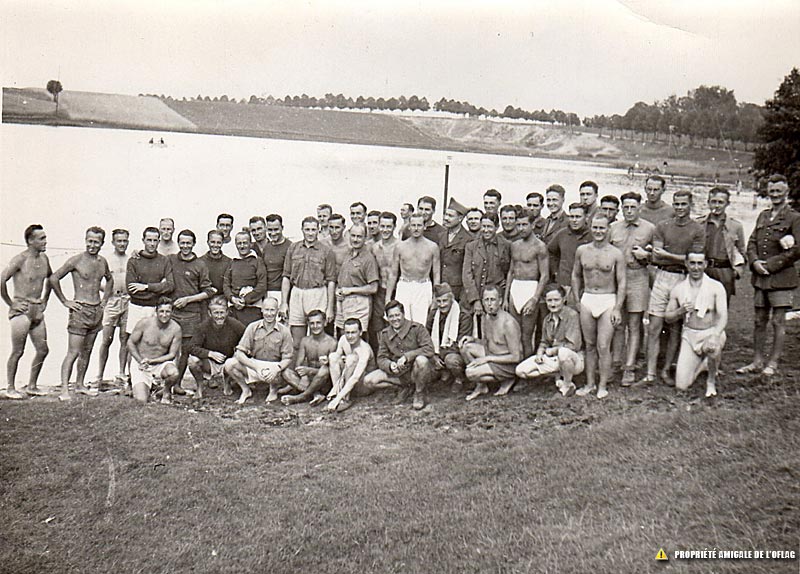 Baignade en 1941 Oflag IID Gross-Born Le prisonnier le plus à gauche avec les mains sur les hanches est le Lieutenant Raymond ADMIRAT
