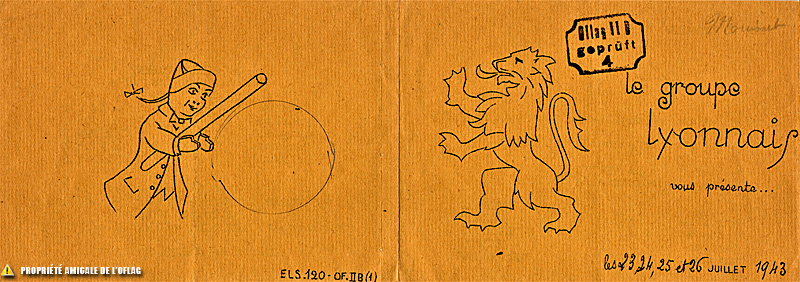 Oflag IIB – Arnswalde : programme de « Guignol » mis en scène par le lieutenant Albert MOUISSET et proposé par « le groupe lyonnais », joué les 23, 24, 25 et 26 Juillet 1943.